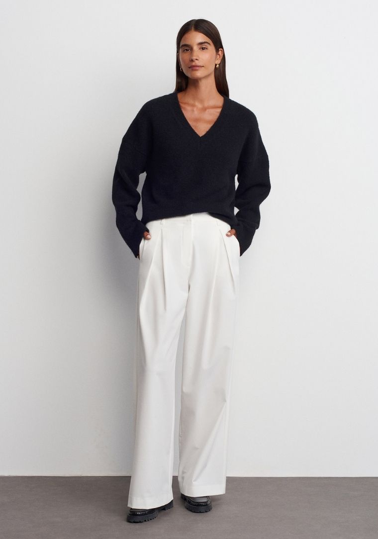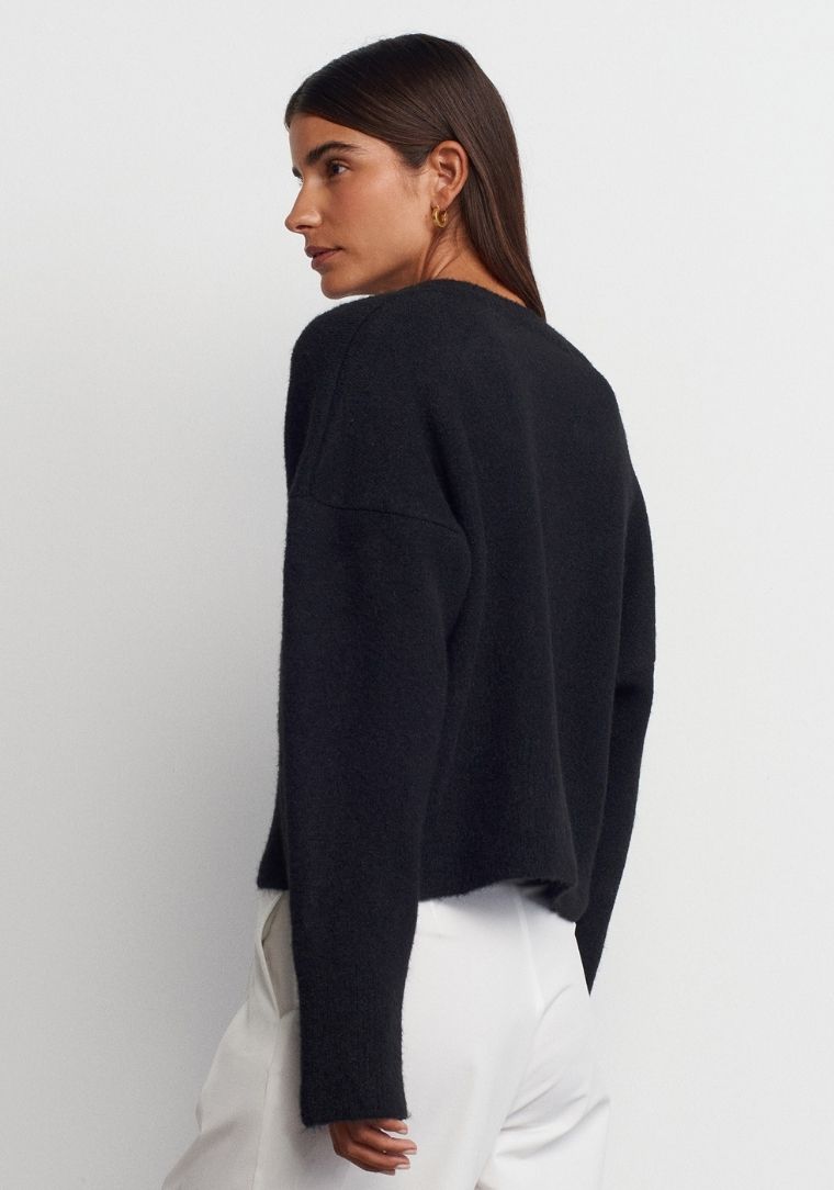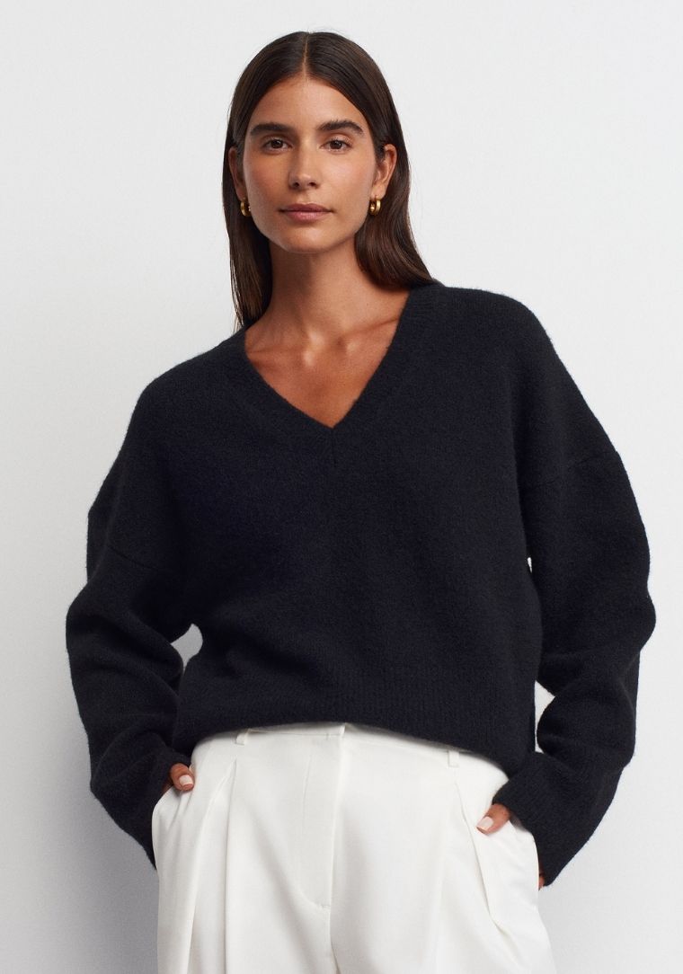 Etiketler | 10645 DİL V Yaka Yumuşak Dokuku Triko Kazak |