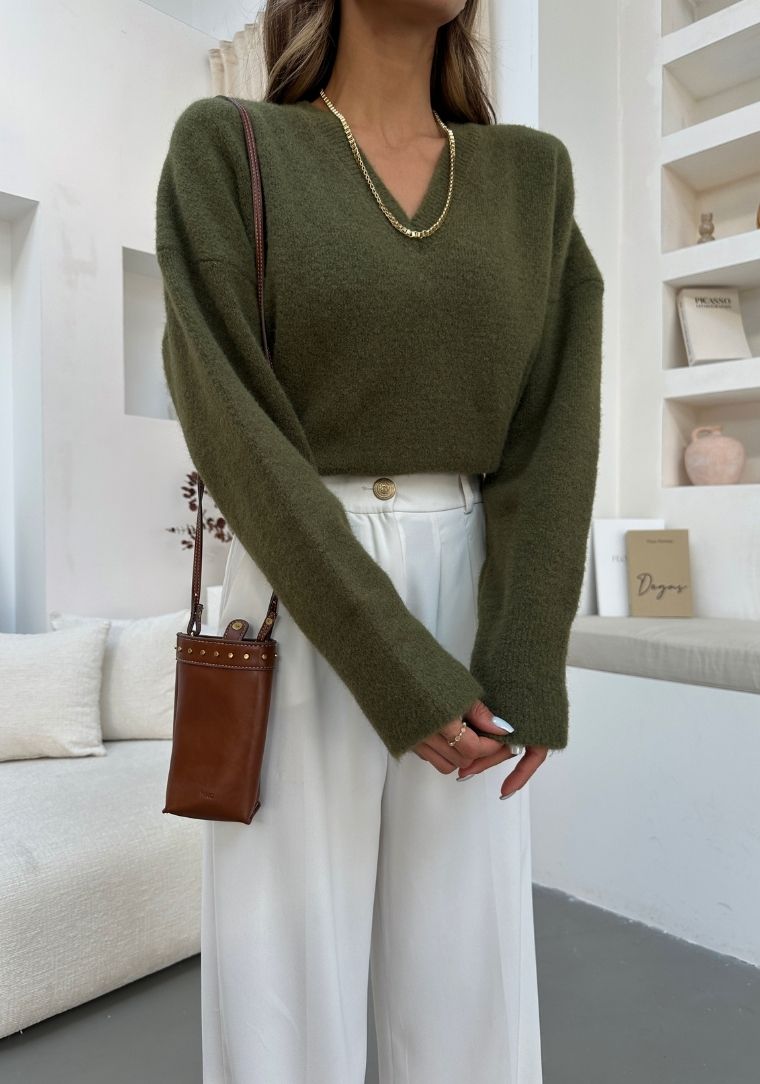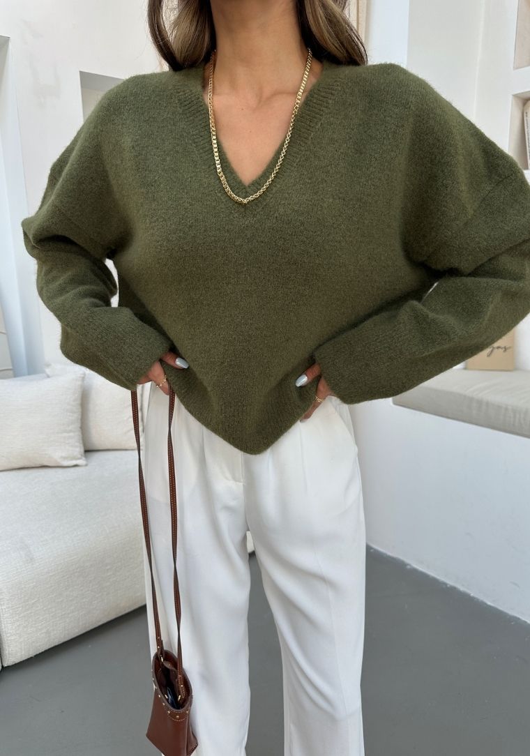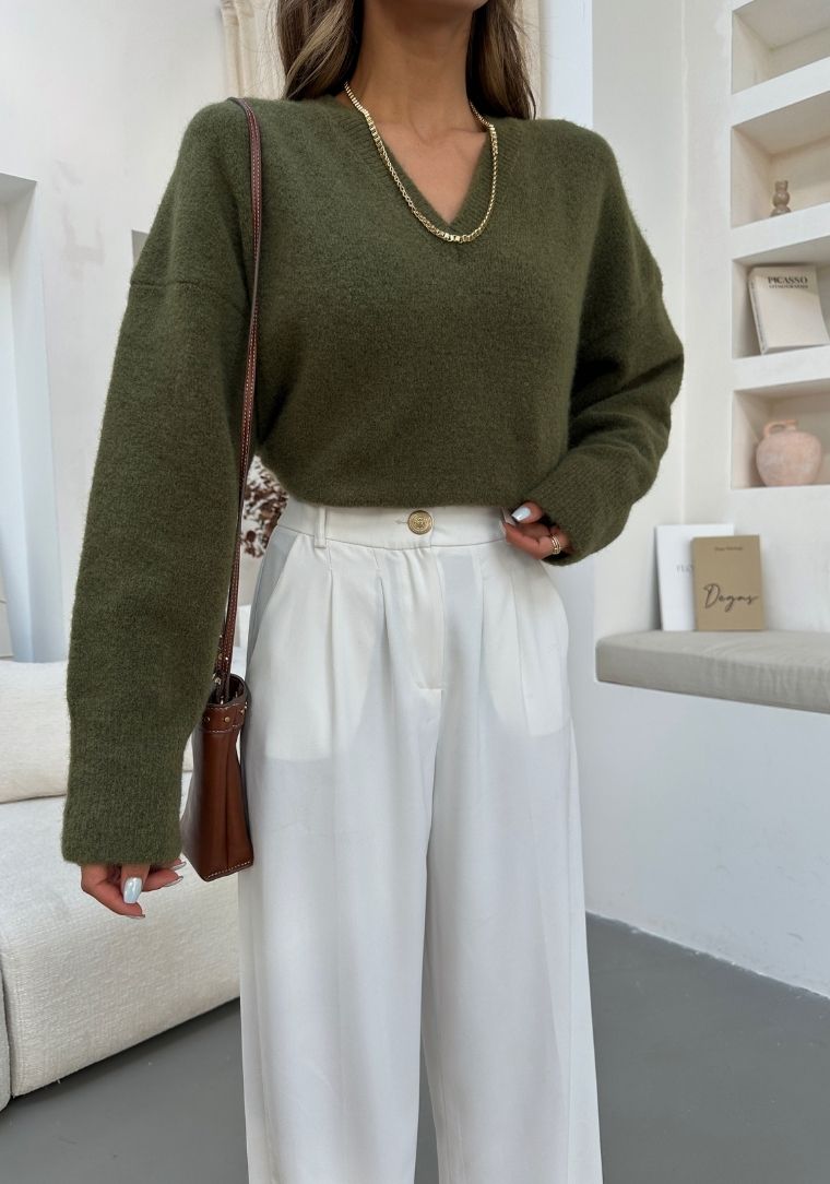 Etiketler | 10645 DİL V Yaka Yumuşak Dokuku Triko Kazak |