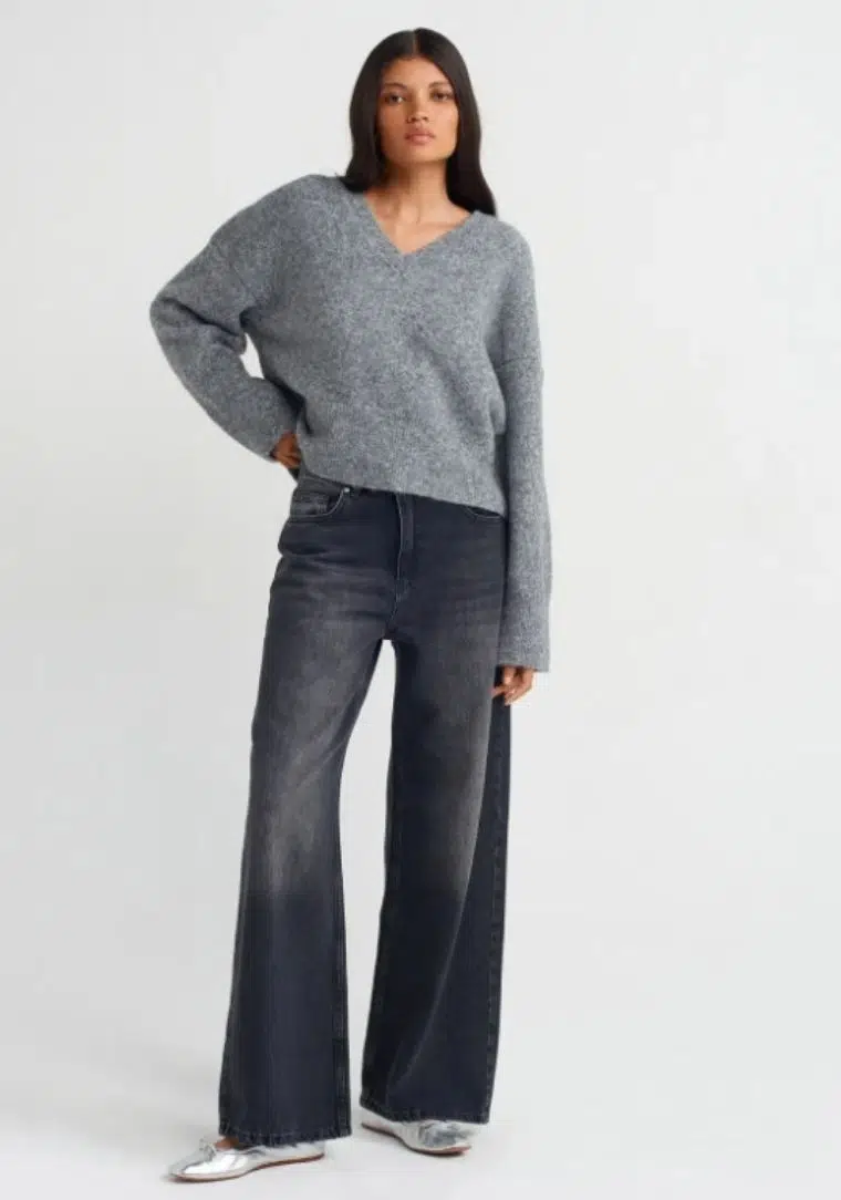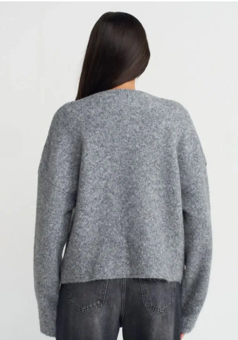 Dik Yaka Düğmeli Yumuşak Dokulu Yırtmaçlı Triko Hırka
