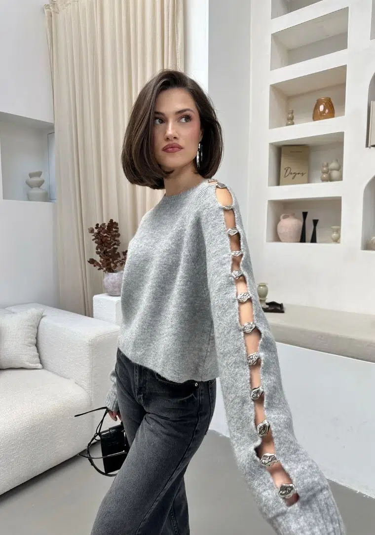 Etiketler | 10810 DİL Bisiklet Yaka Aksesuar Detaylı Triko Kazak |
