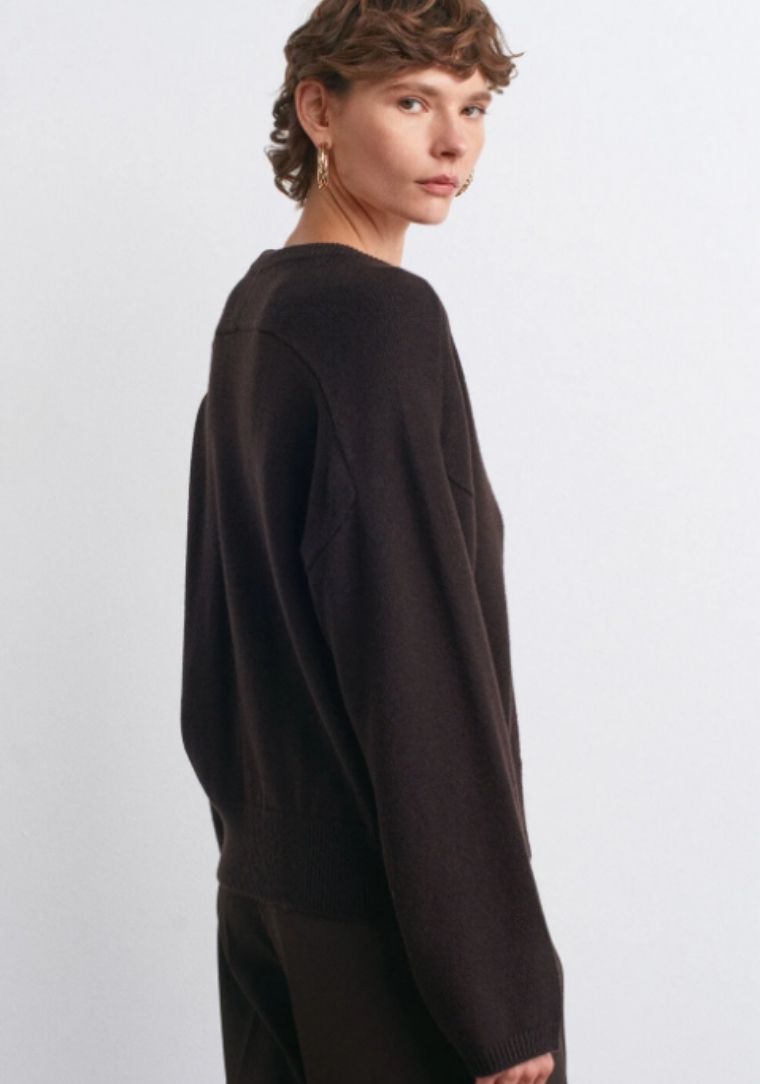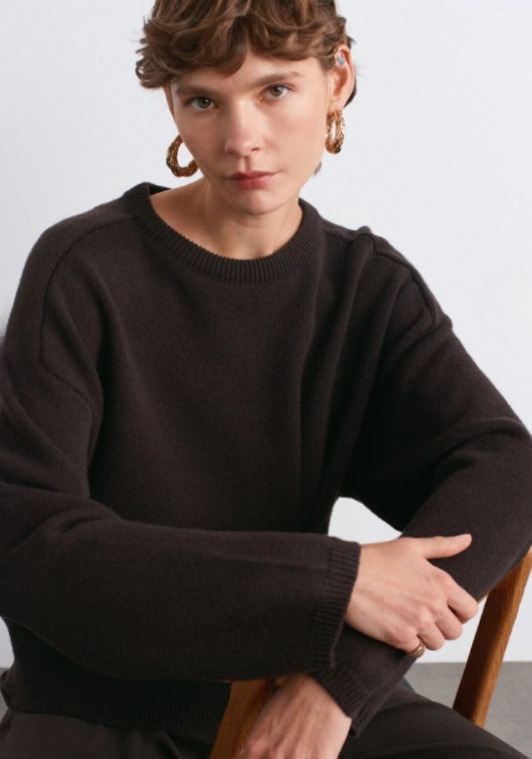 Etiketler10812 DİL Bisiklet Yaka Büzgü Düğme Detaylı Yünlü Triko Kazak