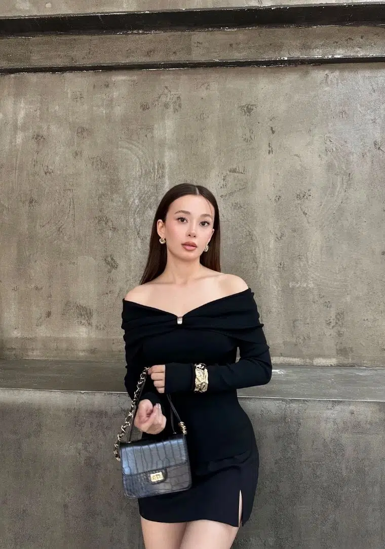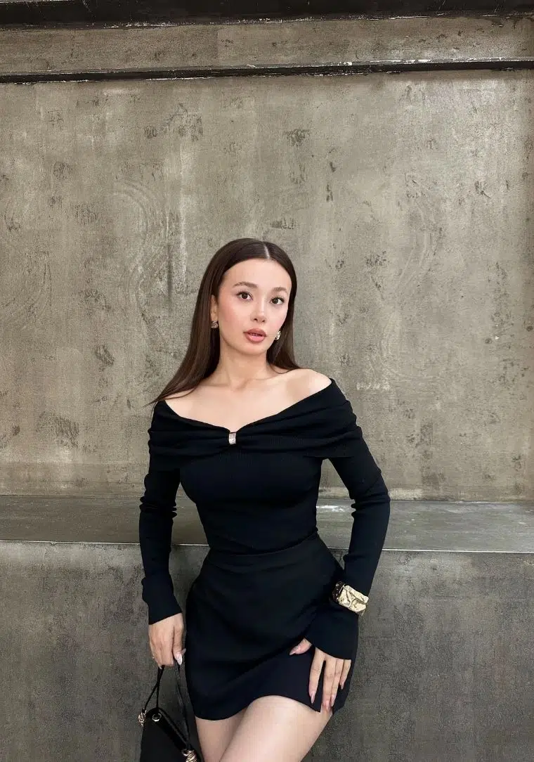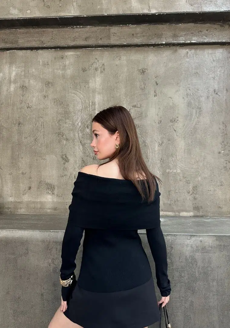 Etiketler10820 DİL Bardot Yaka Aksesuarlı Triko Kazak