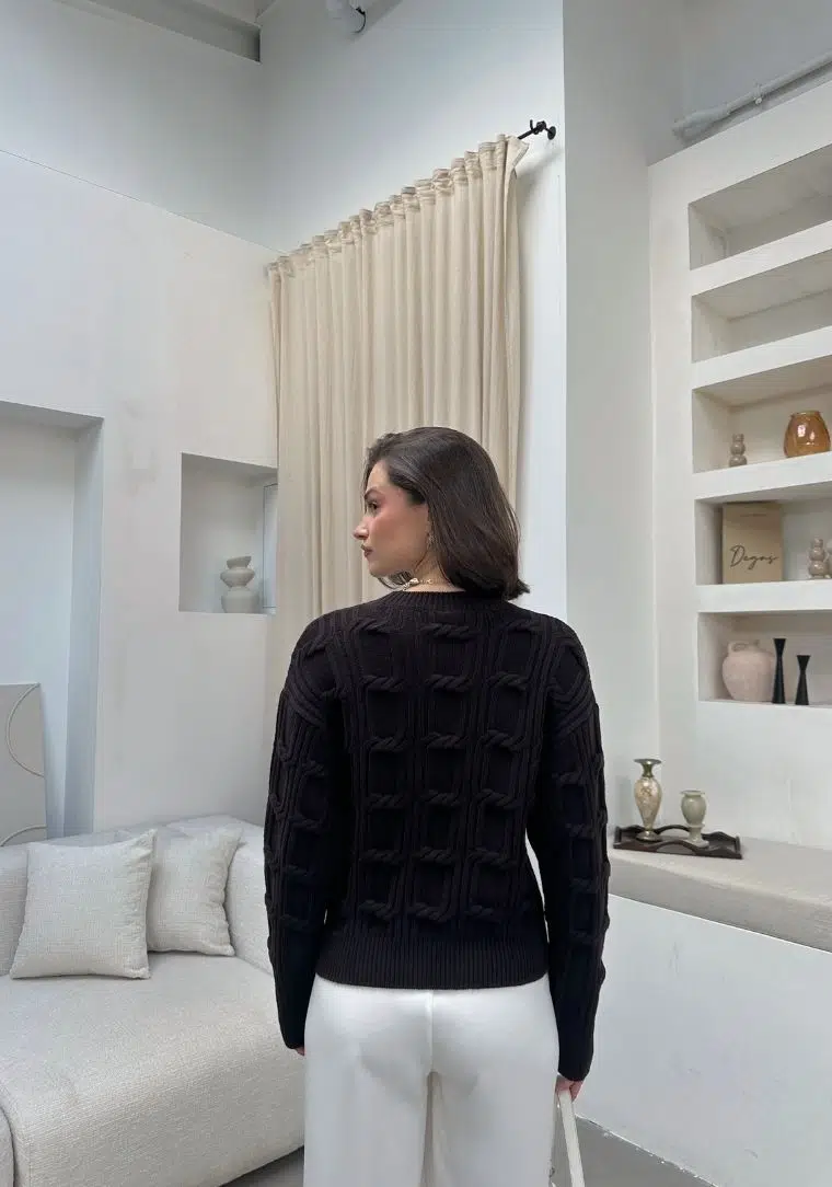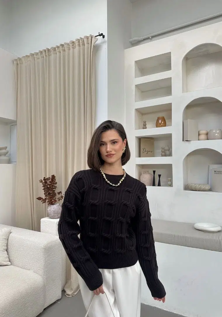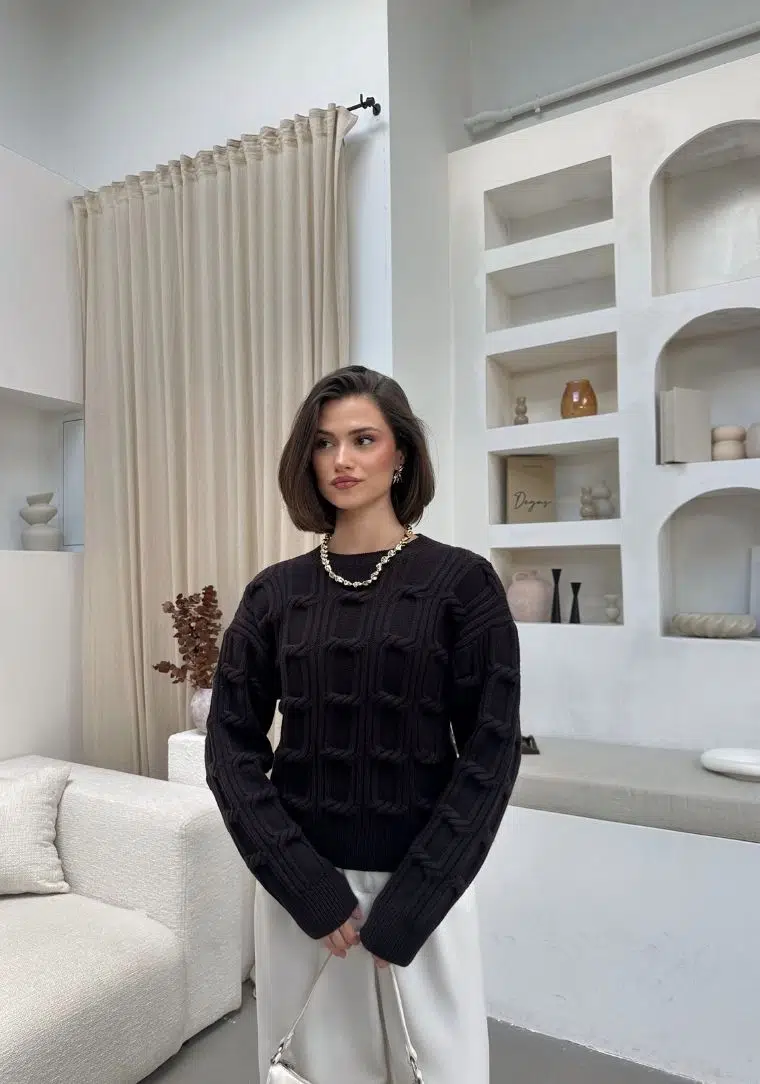 Etiketler10825 DİL Bisiklet Yaka Örgü Detaylı Triko Kazak