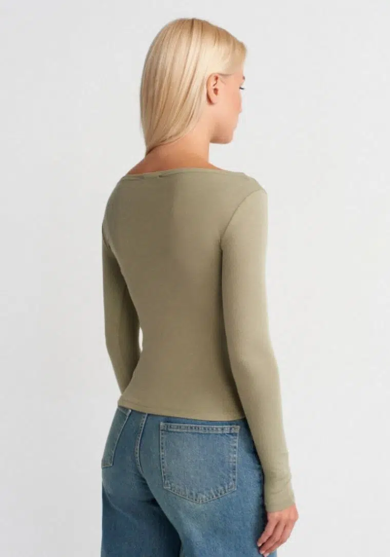 Bisiklet Yaka Buklet Cepli Düğmeli Triko Hırka