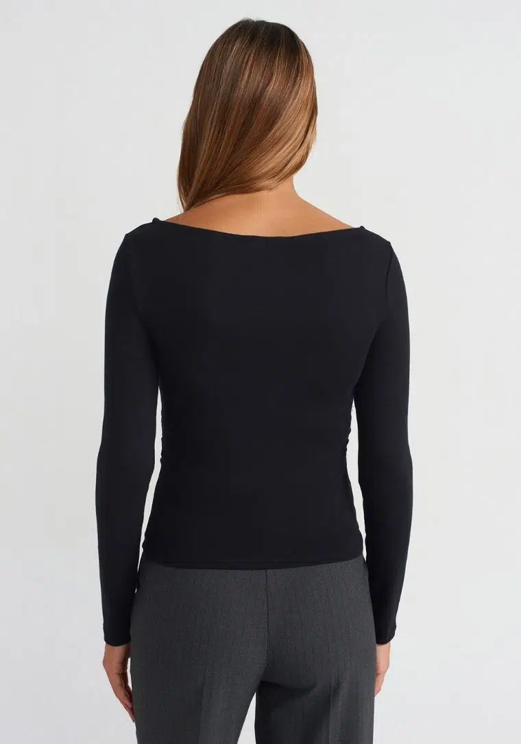 Etiketler31401 DİL Büzgülü Kayık Yaka Top