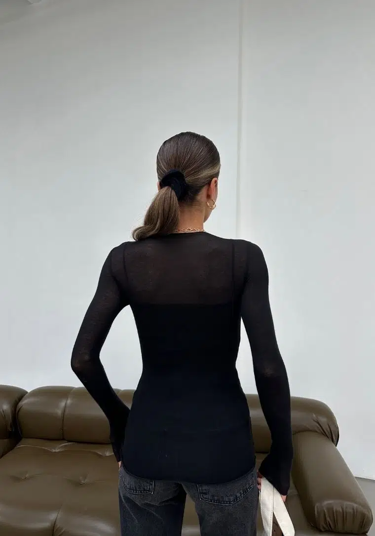 Bisiklet Yaka Pullu Simli Triko Kazak
