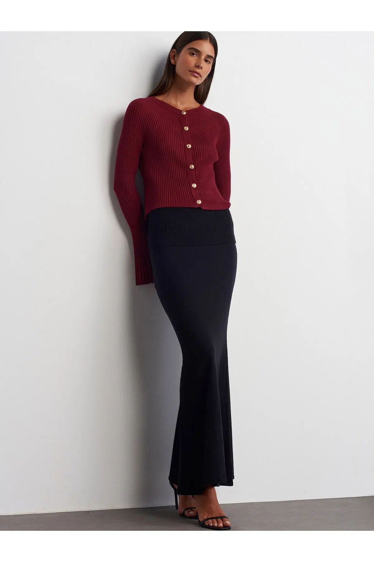Etiketler60246 DİL Bisiklet Yaka Düğmeli İspanyol Kol Triko Hırka