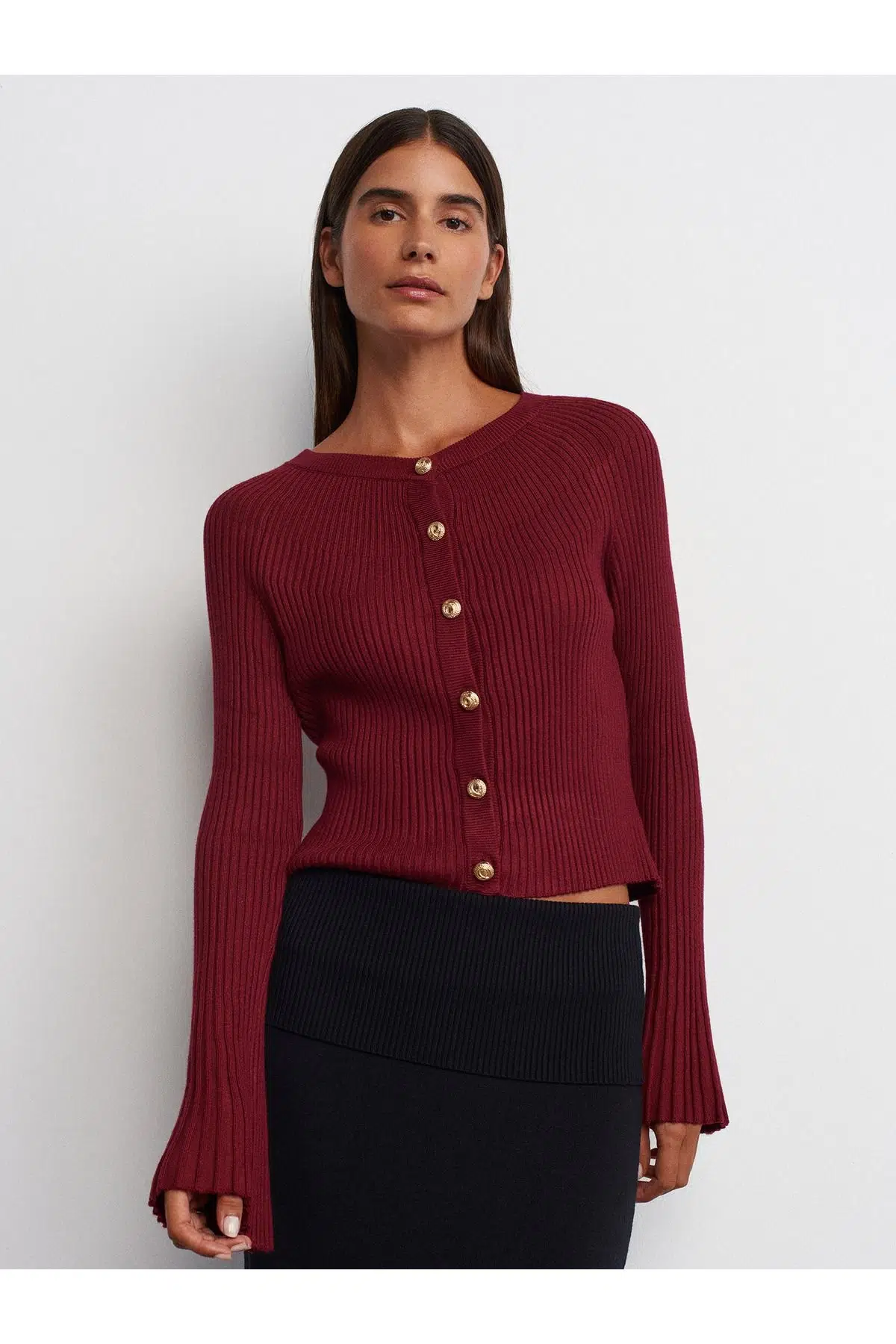 Bisiklet Yaka Düğmeli İspanyol Kol Triko Hırka