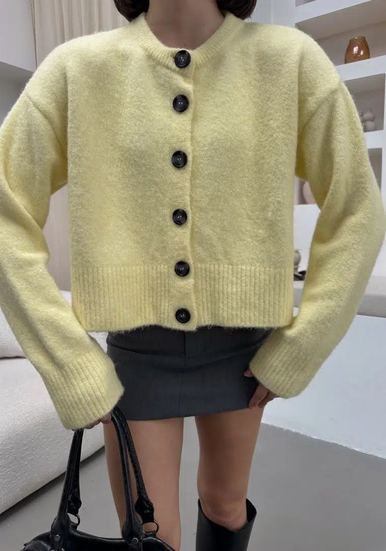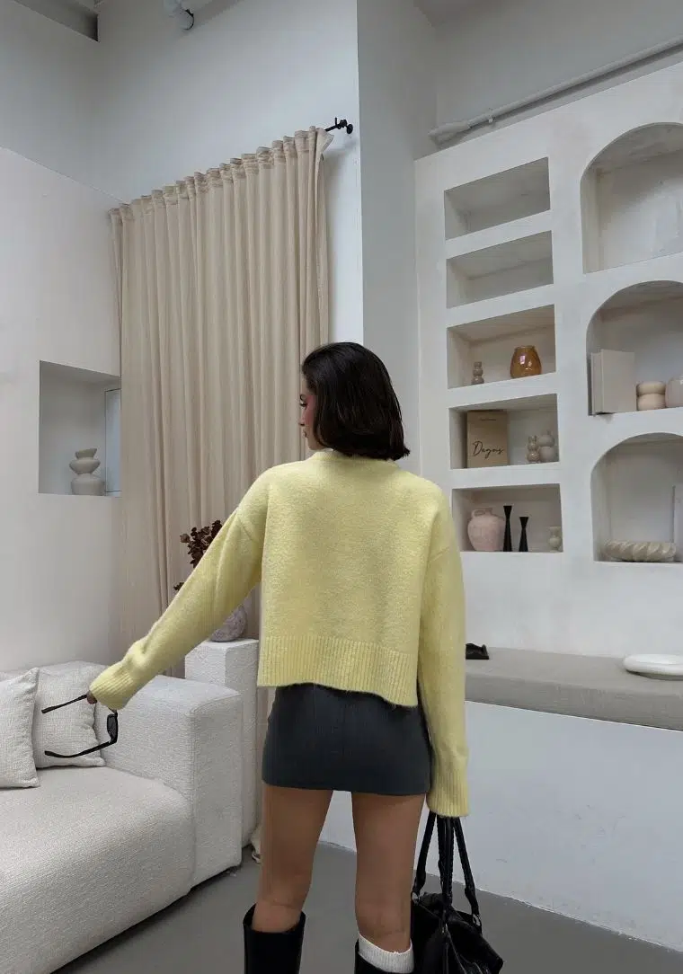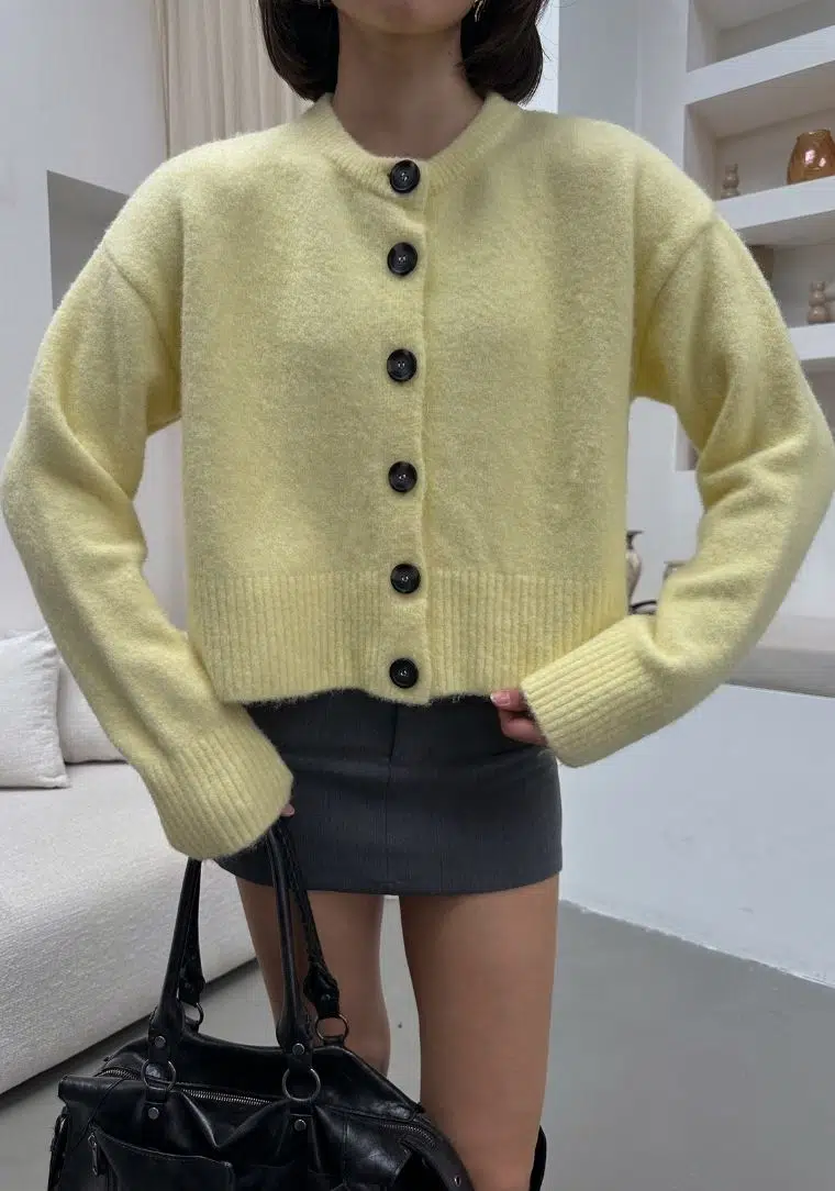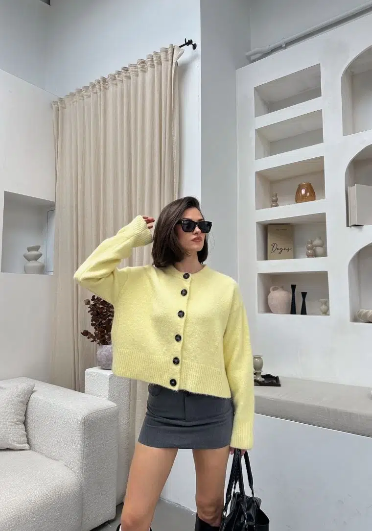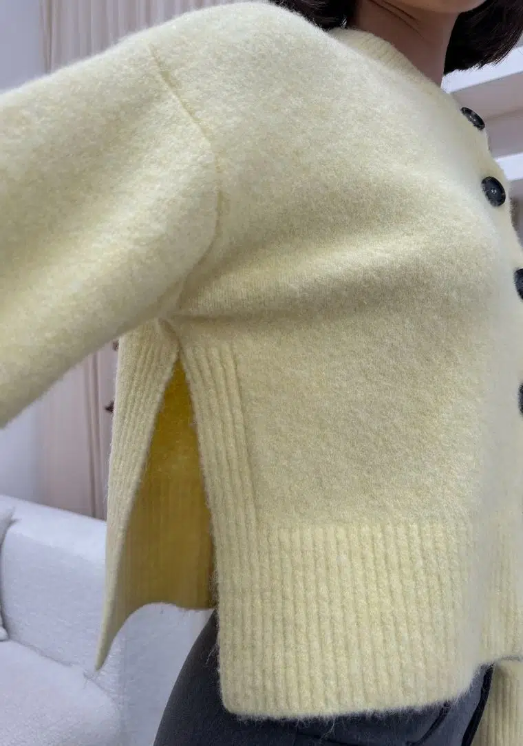Etiketler60280 DİL Dik Yaka Düğmeli Yumuşak Dokulu Yırtmaçlı Triko Hırka