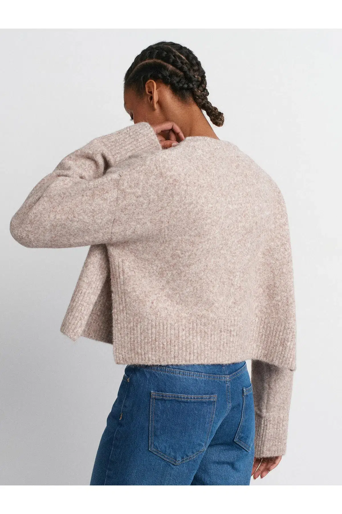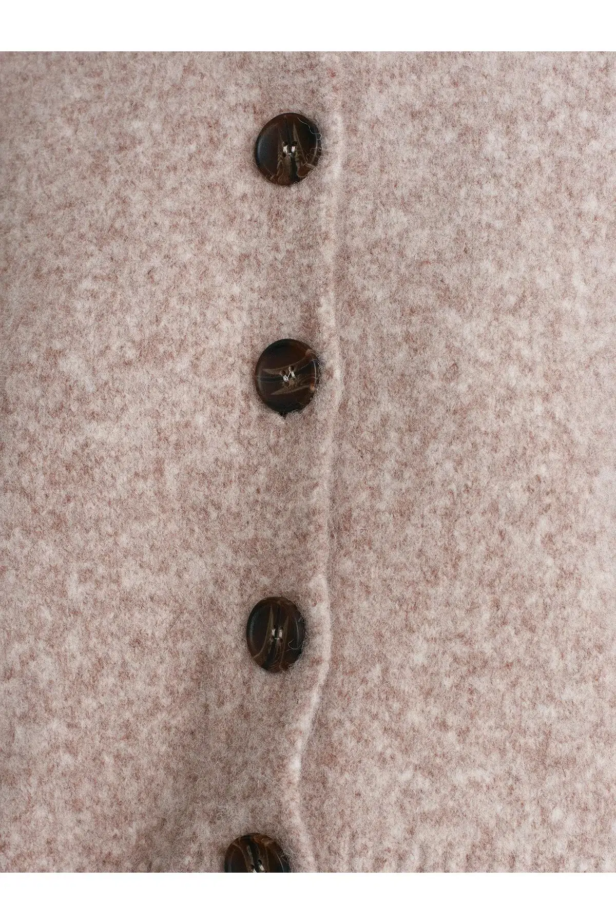 Etiketler60280 DİL Dik Yaka Düğmeli Yumuşak Dokulu Yırtmaçlı Triko Hırka