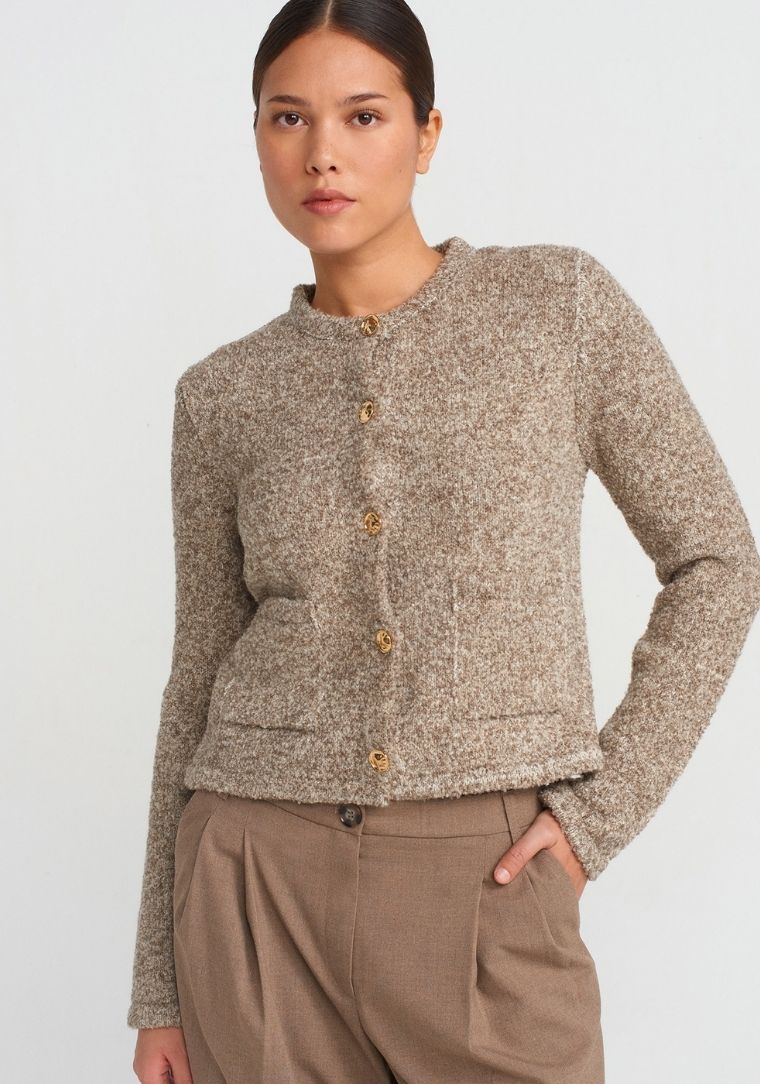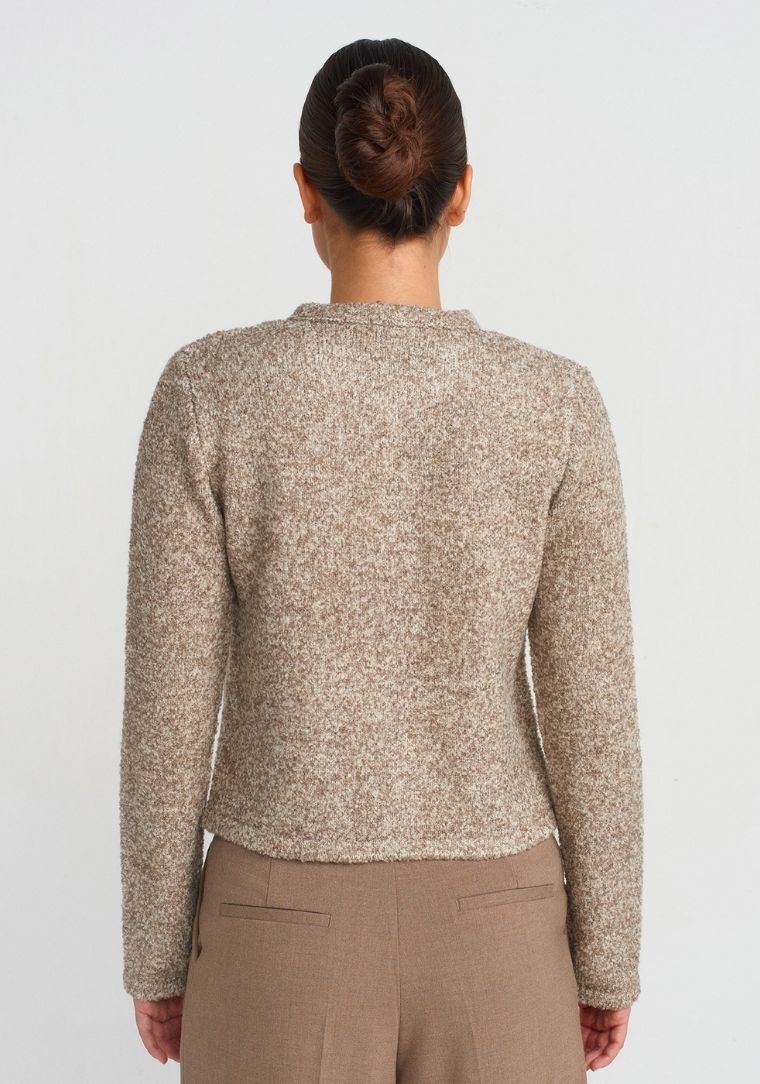 Etiketler60923 DİL Bisiklet Yaka Buklet Cepli Düğmeli Triko Hırka
