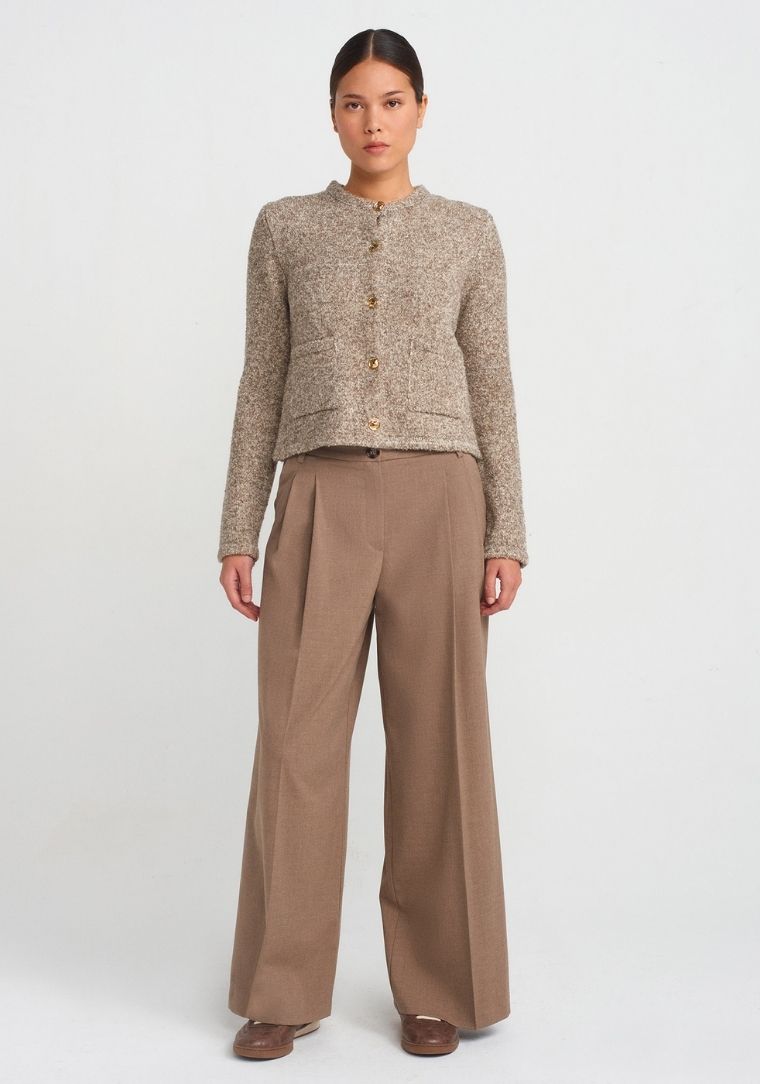 Bisiklet Yaka Buklet Cepli Düğmeli Triko Hırka