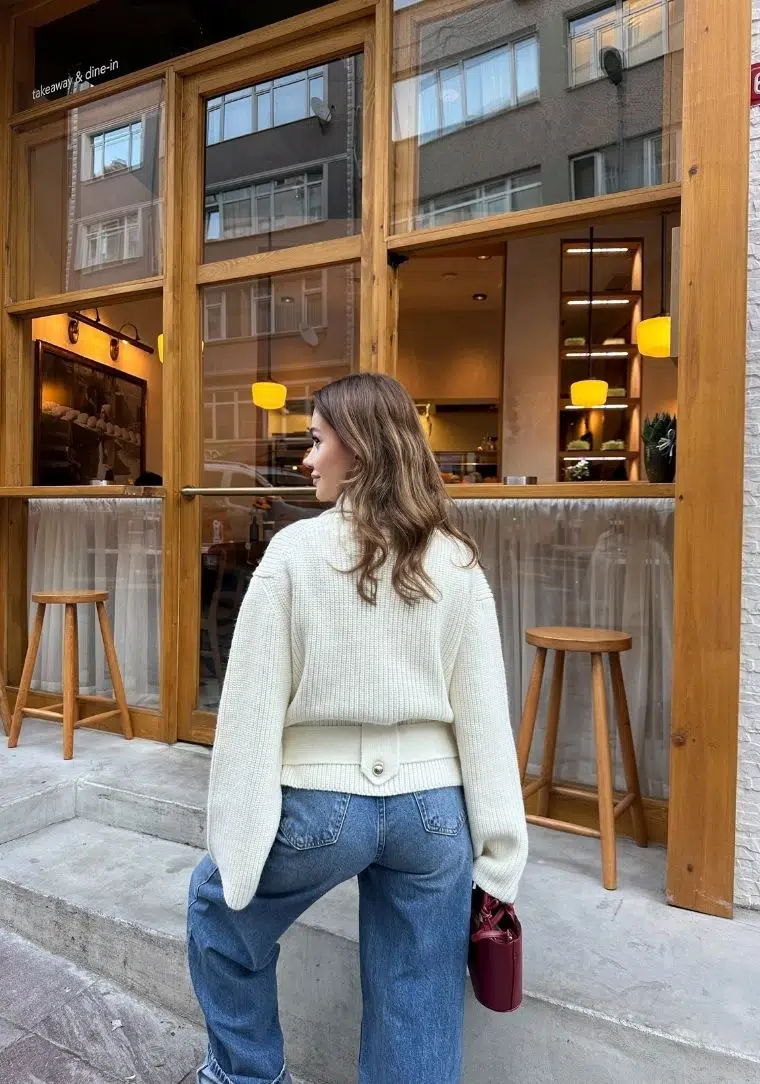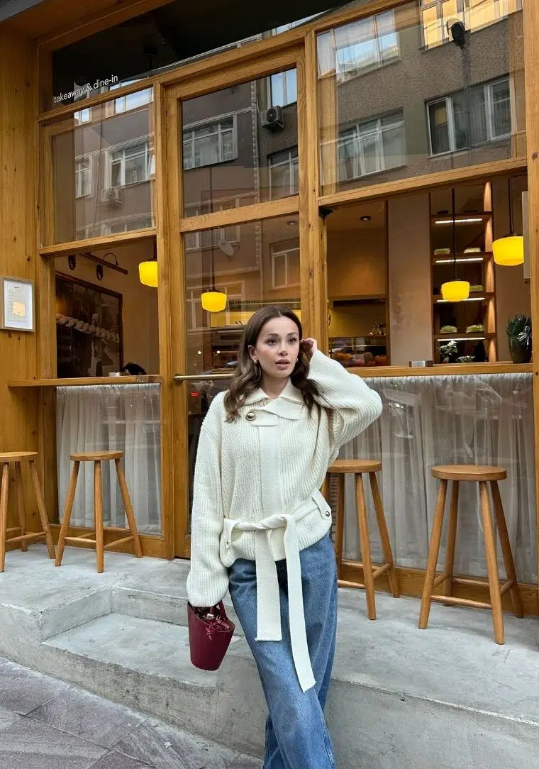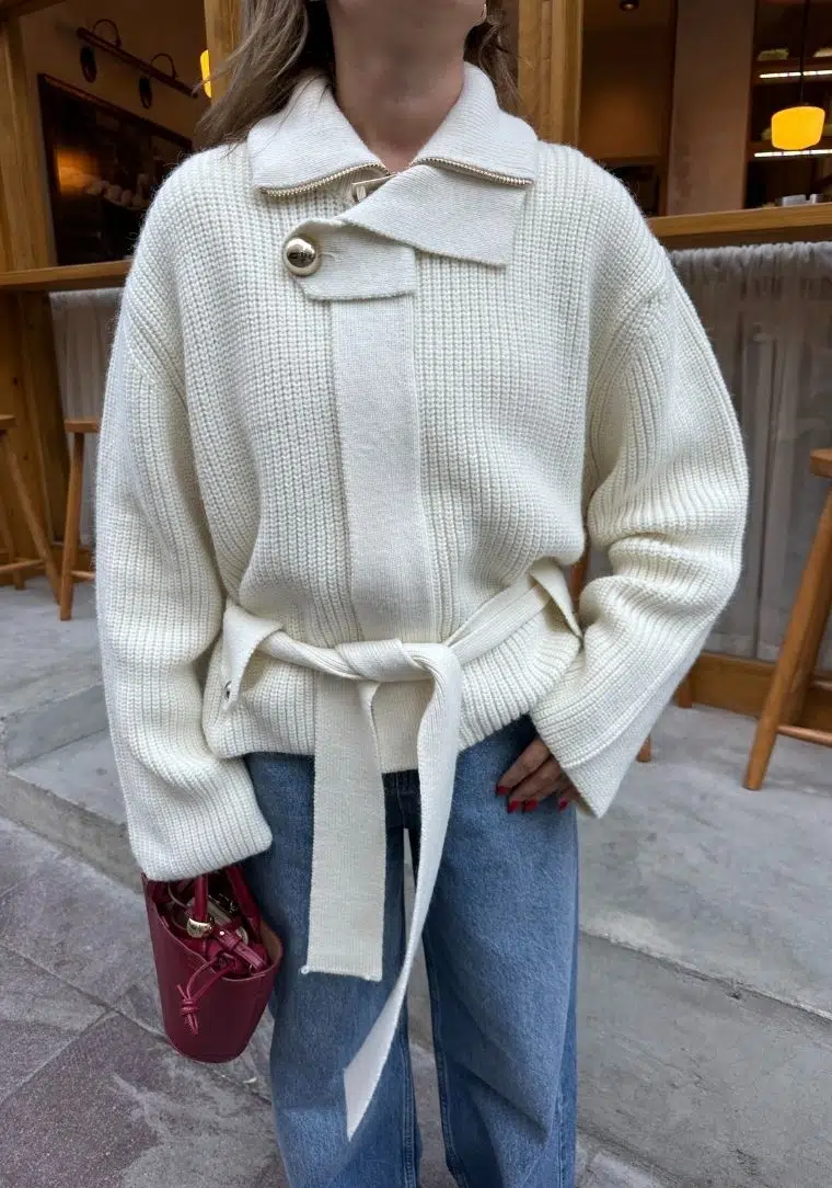 Etiketler | 60988 DİL Fermuarlı Kemerli Düğmeli Yünlü Triko Hırka |